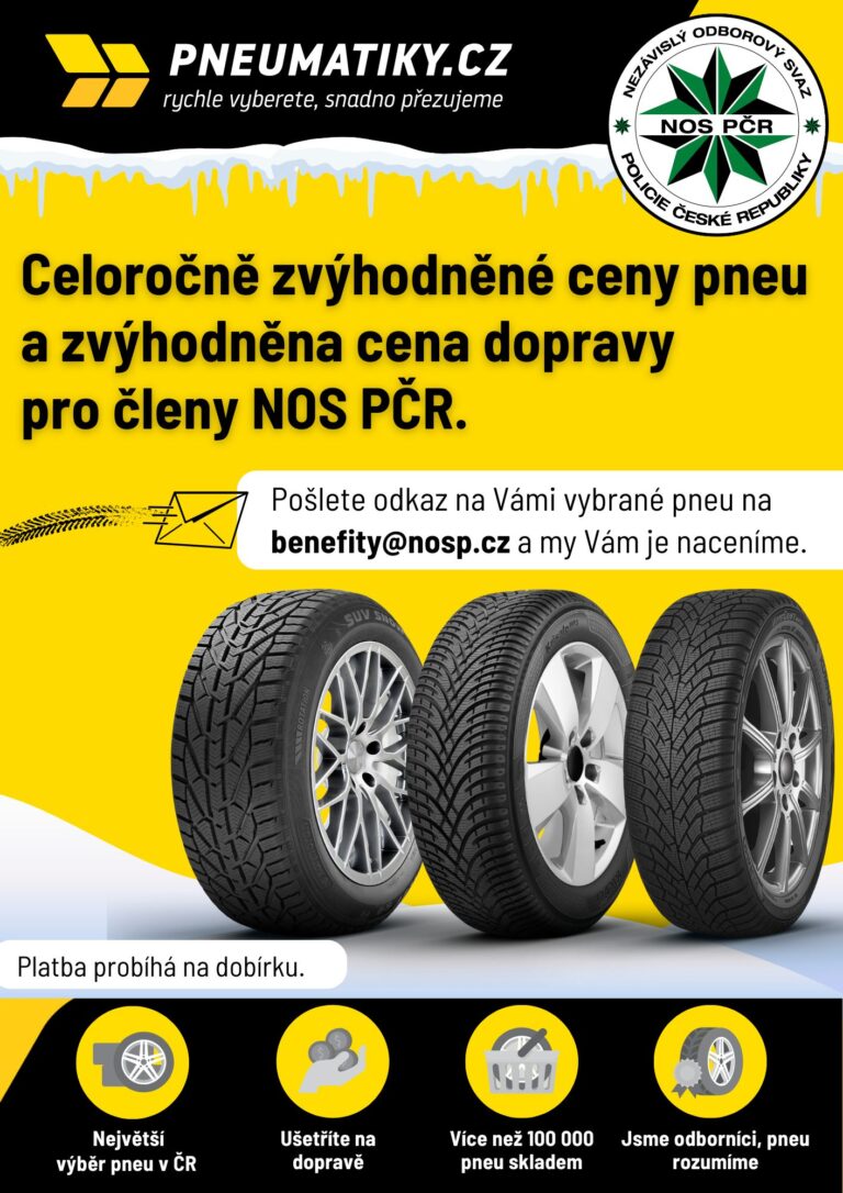 Členové a veteráni NOS PČR mohou nakoupit pneumatiky za speciální velkoobchodní ceny a se zvýhodněnou dopravou u Pneumatiky.cz.