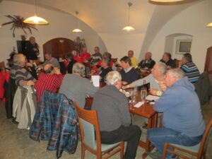 Hlavní částí programu bylo ale přátelské setkávání, povídání o zážitcích ze služby i z osobního života a vzpomínání na léta, prožitá v policejních řadách. K příjemné a přátelské atmosféře přispělo i malé občerstvení studené kuchyně a samozřejmě i výborné a správně chlazené nápoje. Po několika hodinách se přítomní rozcházeli s přáním radostných vánoc a pevného zdraví v novém roce. Jednotným přáním a záměrem všech přítomných jsou i další podobné a stejné příjemné akce i v příštím roce.