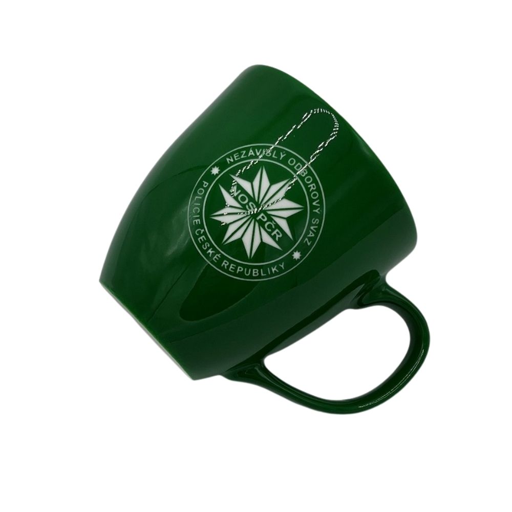 Hrnek bílý keramický s barevným vnitřkem+lžičkou s logem NOS PČR