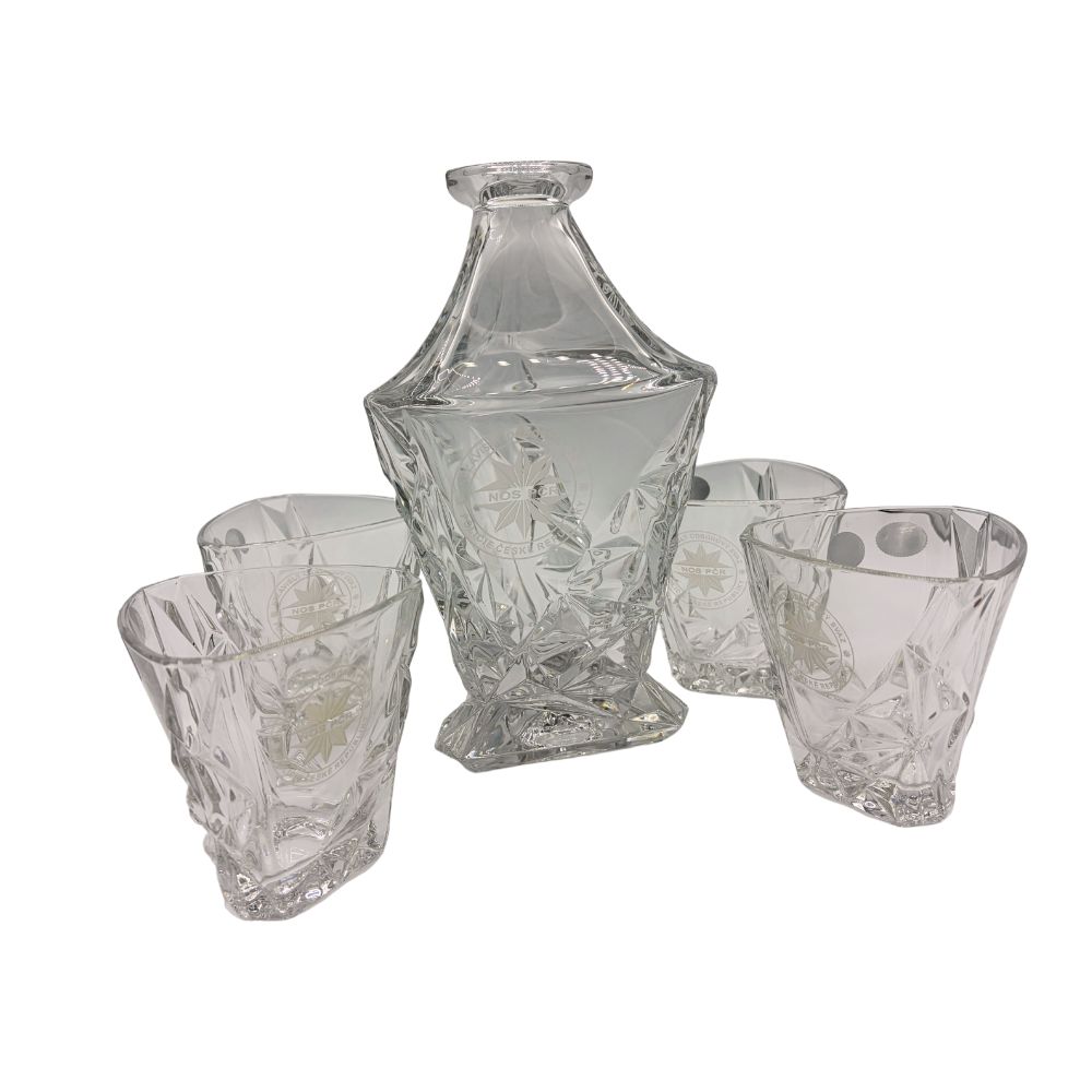 Skleněný whisky set Eskymos 1+6 s logem NOS PČR