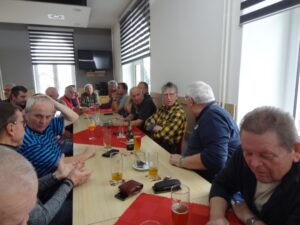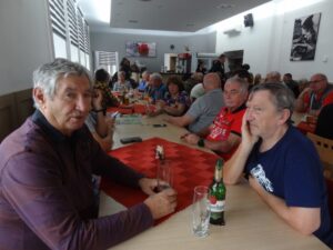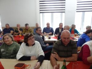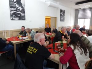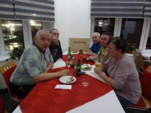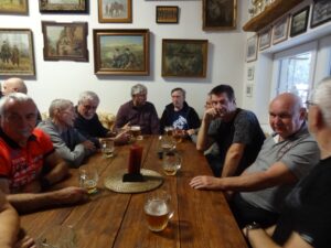 Odpoledne se účastníci vydali na krátkou procházku po Železné Rudě, kterou zakončili zastávkou v restauraci U hřiště, kde přišlo vhod chutné dvanáctistupňové pivo i příjemné teplo. Večer pokračoval společnou večeří formou oblíbeného rautu, u kterého bylo těžké odolat nabízeným dobrotám – tradičně jako první zmizel tatarský biftek.