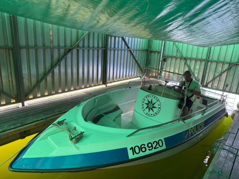 V sobotu nás po menší mlze vzbudilo krásné počasí (dle plánu i v neděli). A také ostatní veteráni, kteří postupně přijížděli. Kolem deváté hodiny nás Pepík Hlaváč oficiálně přivítal a seznámil s programem setkání. Přivítání bylo vylepšeno chutnými Staňkovskými koláči s kávičkou. Od 11.30 hodin následoval oběd v restauraci Na hrázi, přičemž počasí se stále zlepšovalo. Ve 14.00 jsme nedočkavě vyhlíželi „parník“ (byl zakotvený v přístavišti), se kterým nás 24 odplulo na Radost. Zde jsme se prošli, občerstvili a za hodinu jsme se zase nalodili na zpáteční cestu. Během plavby nám udělali vlny proti plovoucí vodní záchranáři, a dokonce zakroužil nad přehradou i záchranářský vrtulník. Ale to nevíme, kdo to zařídil? Měli jsme štěstí, protože to byla poslední plavba parníku v této sezoně. Po vylodění pod hrází nás ještě čekala ukázka vybavení a činnosti policejní prvosledové hlídky, kterou pro nás připravili dva mladí policisté z OOP PČR Nýřany. Velice fundovaně nás seznámili se vším, co používají při výjezdech, včetně zbraní, taseru, záchranářského vaku, zastavovacího pásu. Dále nám uvedli některé případy zásahů ze své praxe a zodpověděli dotazy. Trpělivě vyslechli zkušenosti z naší služby v dávné době. Na závěr jsme si mohli prohlédnout služební člun pro zásahy na vodní hladině přehrady Hracholusky. Pivo nemohli, tak jsme je obdarovali Staňkovskými koláči.